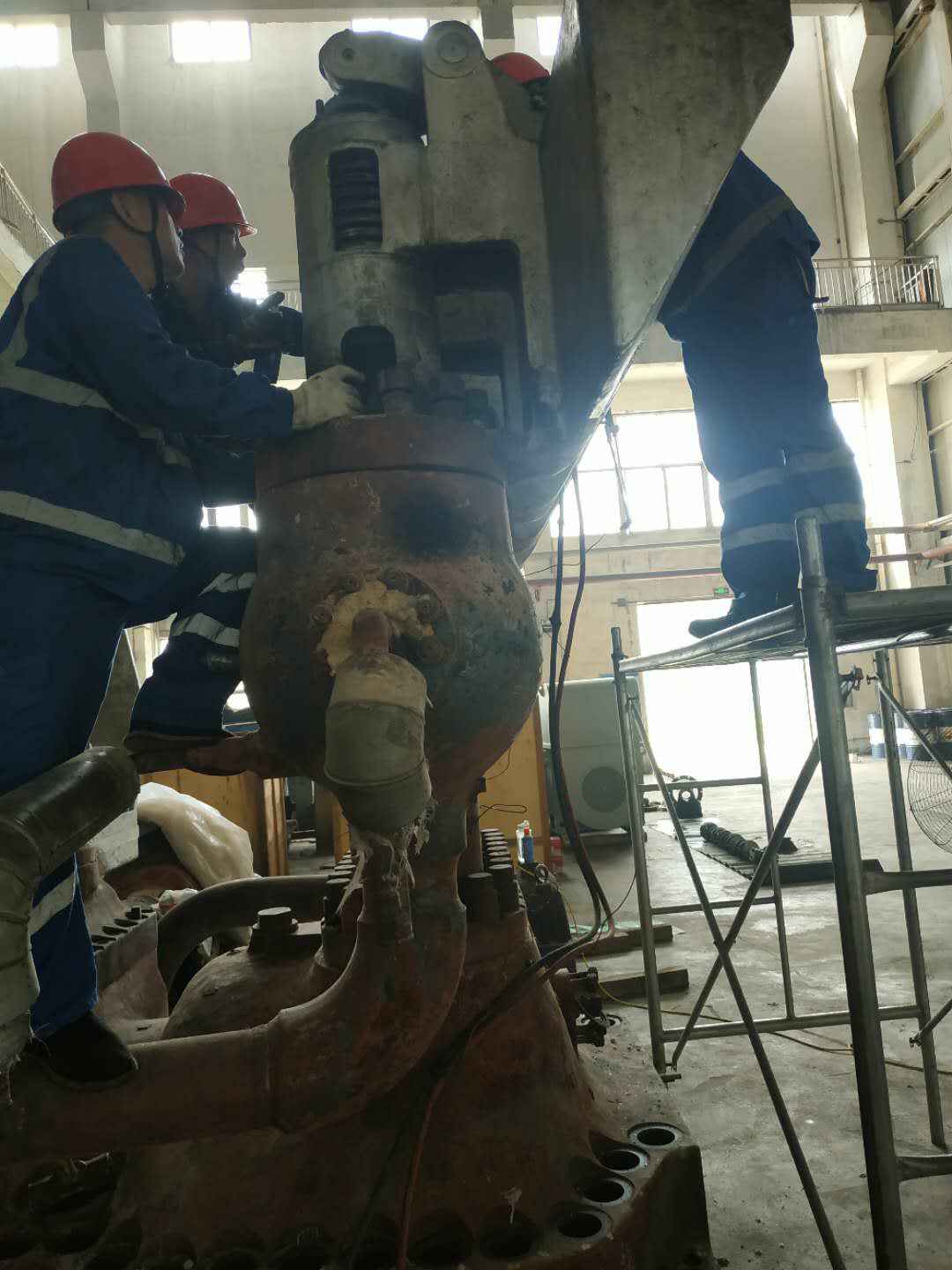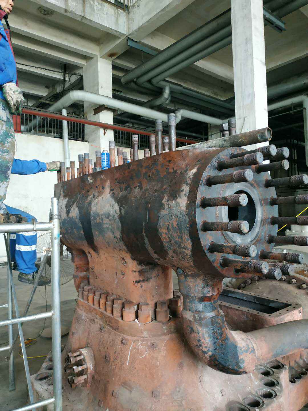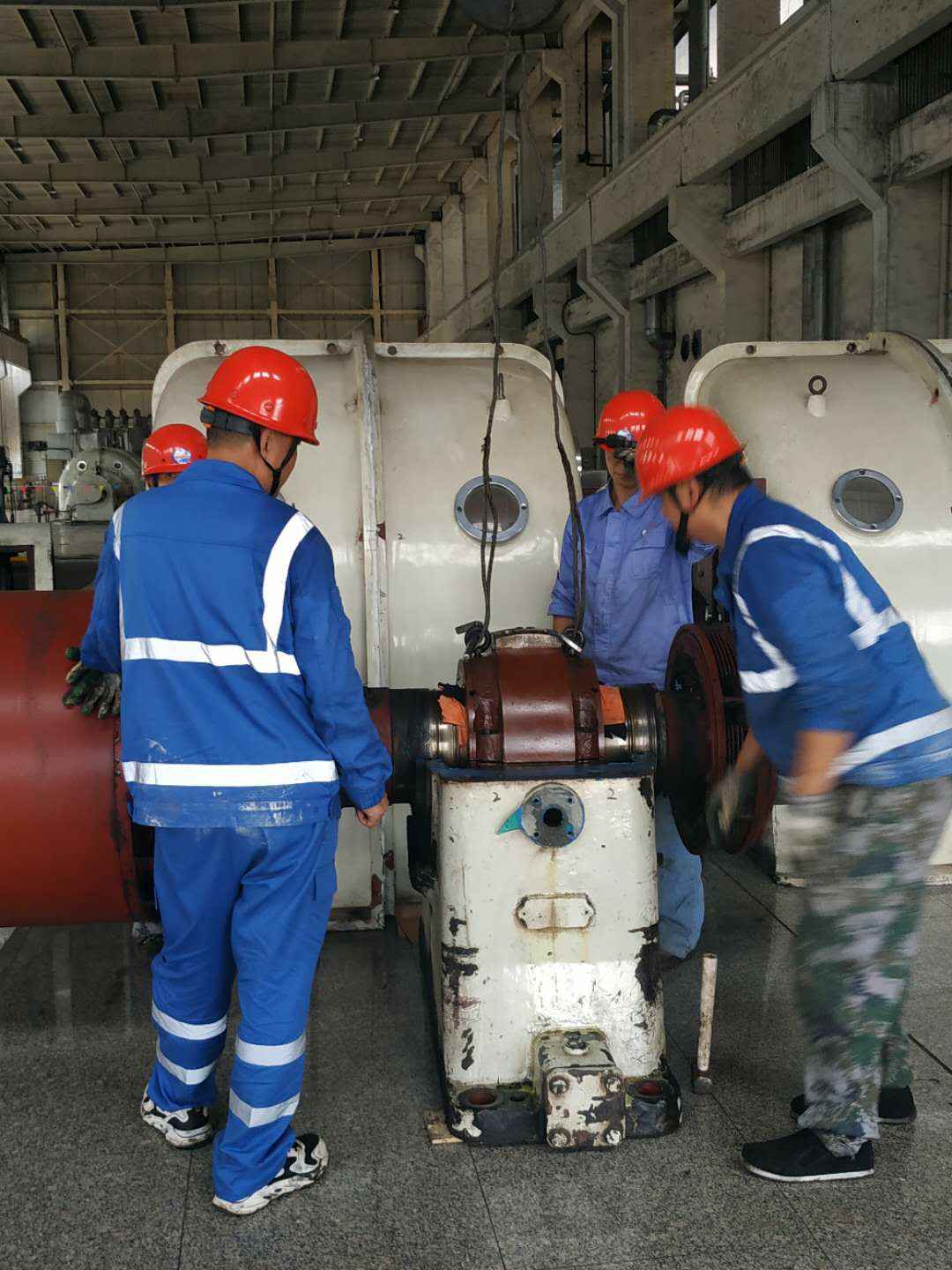 由中欧官方网站-中欧(中国)承建的山东海能化学有限责任公司机组B15MW背压式汽轮机组(原 C25抽汽凝汽式机组)大修工程现已完成凝结水泵、油站检修工作,发电机前后轴承座基础垫铁研磨工作,目前蒸汽室螺栓的拆卸工作及发电机定子与转子的清理工作陆续启动,下气缸吊隔板工作也在稳步进行中。